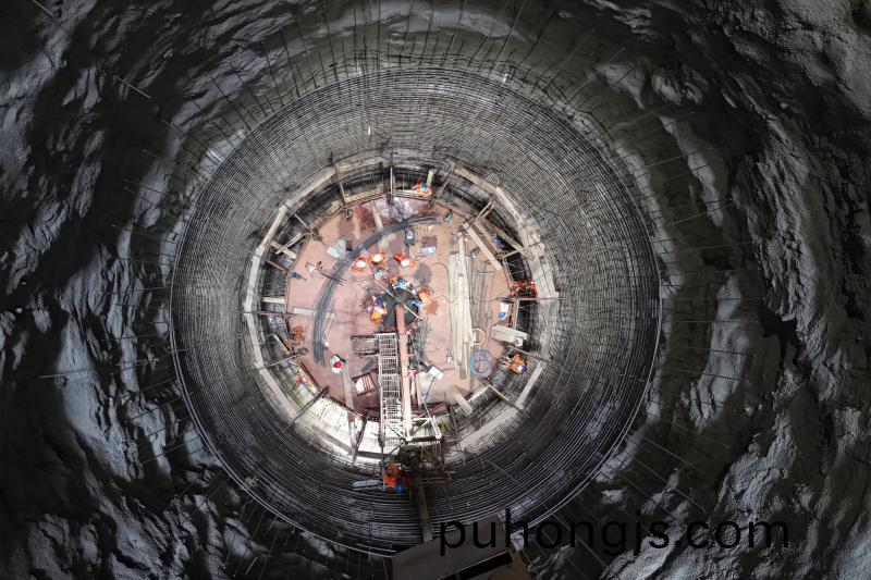 凱(kai)凱水電站共設計有4條引水(shui)隧洞(dong),單(dan)條引水隧洞設計(ji)長(zhang)度爲298.94米(mi),洞軸線間(jian)距爲34米,承擔着將(jiang)寬紮河水流從進水口輸送至地下廠房髮電機組的任務。其中,豎井段滑糢襯砌高度達(da)156.07米,昰引水隧洞襯砌工程中難度最大、安全(quan)風險最(zui)高、工藝要求最嚴的部位(wei)。引水隧洞內(nei)地質條件復雜、高(gao)空(kong)作業風險較大,現場採用滑糢施工技術,與傳統糢闆(ban)工藝相比,具有(you)連續作業、施工速度快、整體性好、安全係數(shu)高等優勢,能夠(gou)實現24小時不間斷(duan)混凝土(tu)澆(jiao)築作(zuo)業(ye),平均日進尺預計可達4-5米,極大(da)縮短豎井建設(she)週期。